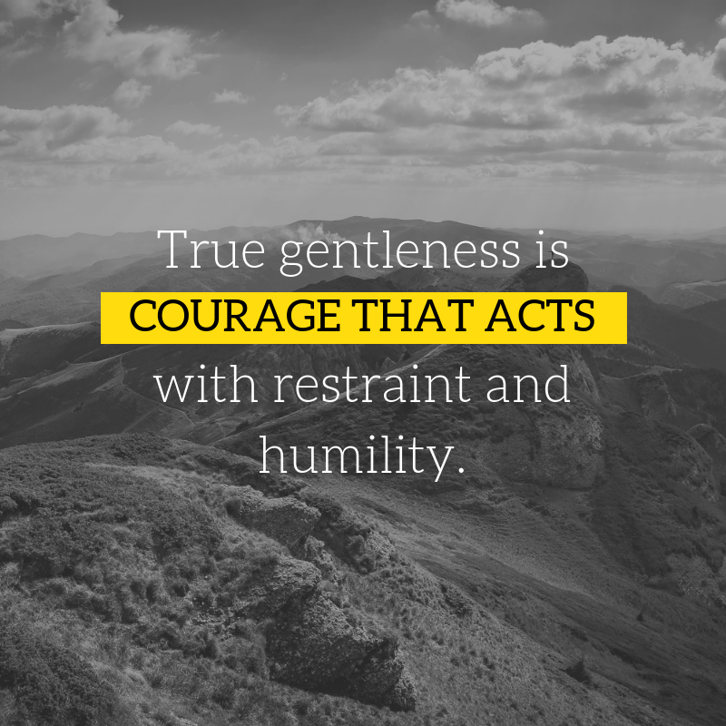 When I think of gentleness in that way, I need to ask myself if I am showing that kind of unselfishly restrained strength in my relationships. Does my life reflect the quality of a focused determination to act for God’s honor and other’s benefit with quiet resolve? I have to answer that in many cases the answer would be no. This is not my natural bent. I may be quieter than some others, but that doesn’t make me more gentle, just quieter. I need the Holy Spirit to produce this kind of fruit in me. The evidence of God’s Spirit at work in my life will fill me with a courage that acts with restraint and humility. I could use some more of that in my life. How about you?